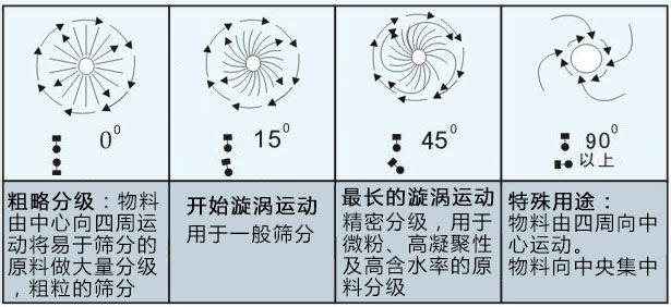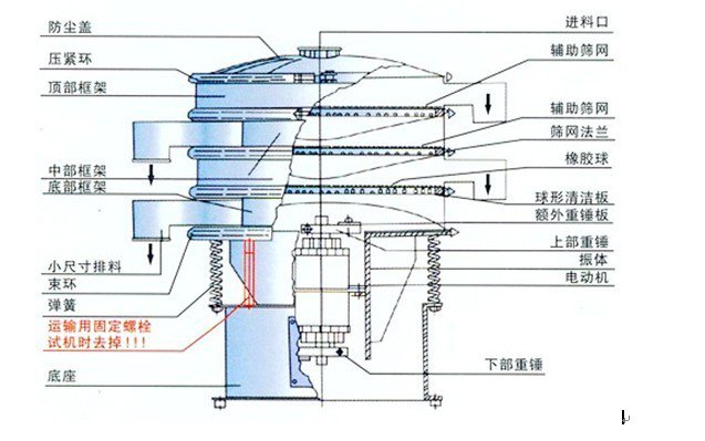 食盐振动筛粉机得工作原理是由直立式电机作激振源,电机上、下两端安装有偏心重锤,将电机的旋转运动转变为水平、垂直、倾斜的三次元运动,再把这个运动传递给筛面。调节上、下两端的相位角,可以改变物料在筛面上的运动轨迹。